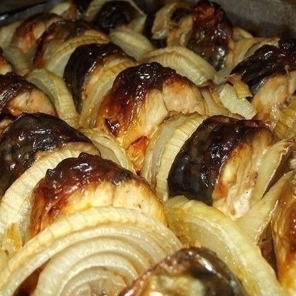 Готовим дома. Скумбрия, запеченная в духовке. Ингредиенты: - Скумбрия свежемороженная - 1 кг. (три рыбки) - Лук - чем больше, тем лучше! (у меня уходит пять хороших луковиц) Показать полностью…- Майонез - Кетчуп (использую кетчуп "Лечо" Махеев) - Специи Приготовление: 1. Рыбу чистим, режем кусочками. 2. Лук чистим, режем полукольцами. 3. Рыбу помещаем в ёмкость, добавляем 4-5 ст. ложек майонеза и 4-5 ст. ложек кетчупа, специи по вкусу, перемешиваем. 4. Затем на противень, выкладываем бумагу для запекания, немного смазываем слив. маслом, выкладываем рыбу, а между кусочками рыбы выкладываем лук полукольцами. И всё это направляем в духовку, температура 180 гр. Готовится примерно час. Я ориентируюсь всегда по луку, как только лук мягкий и сочный - блюдо готово! Приятного аппетита! Готовьте с удовольствием,радуйте свою семью!!!