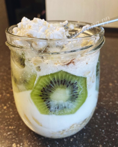 САМЫЙ ВКУСНЫЙ И НЕ ЗАМОРОЧЕННЫЙ ЗАВТРАК ? ? Идеальный завтрак буквально за 5 минут готовим с вечера и утром наслаждаемся готовым вкусным завтраком Все просто ? 50 г овсянки Показать полностью… молоко ок 150г кокосовая стружка 2-3 ст.л корица по вкусу 1/3 банана, киви мягкий творог Банку заполняю слоями и в холодильник на ночь. ? Утром проснулись, достали ее остывать, пока умываемся и вакуум делаем уже и есть можно