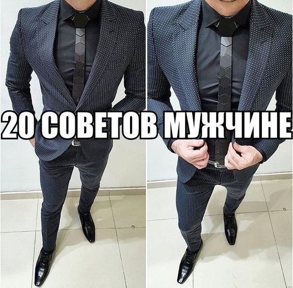 20 советов мужчинам! 1. Носить галстук под рубашку с короткими рукавами так же нелепо, как надевать бейсболку под пальто. 2. В теплое время года носите брюки из легкой ткани. Шорты и трусы – это одежда для приморских посёлков. В условиях города ходить в них неуместно, если только вас не обокрали на пляже. 3. Нагрудный карман пиджака – только для декоративного платочка (паше), не носите в нём ручки и расчески. Показать полностью…4. Гуляя с женщиной, лучше носите в руке дохлую жабу, чем дамскую сумочку. 5. Появляться в ресторане без пиджака могут только те, кто потерял ключ от собственной квартиры. 6. В заднем кармане брюк ничего не носите. 7. В отличие от однобортного пиджака, на котором расстегивают нижнюю пуговицу, двубортный всегда должен быть застёгнут полностью. 8. Отдавайте предпочтение длинным носкам, доходящим до колена, чтобы никогда не была видна нижняя часть голени. 9. В деловом наряде носки и ремень исключительно однотонные: или цвета обуви, или цвета брюк. В спортивной одежде это необязательно. 10. Не поддавайтесь на провокации жен: не носите полиэтиленовые кульки. 11. Избегайте носить ювелирные изделия в форме сердца, знаков зодиака или трезубцев. Современный цивилизованный человек серьёзно не воспринимает символы, почитаемые язычеством. 12. Крест — не украшение! Если вы его носите, он не должен быть виден. 13. Одежда и аксессуары с эмблемой фирмы уместны в одежде менеджеров среднего звена только на рекламных мероприятиях (презентация, выставка) 14. Рубашки с вышивкой уместны на фольклорных праздниках и выставках прикладного искусства. 15. Заколка для галстука выглядит достаточно старомодно и претенциозно. 16. Замшевые и лакированные туфли для мужчин – часть только вечернего наряда. 17. В светской жизни в период с мая по сентябрь откажитесь от темных костюмов. 18. Светлые туфли – только под светлый костюм. 19. Никогда не целуйте руку незамужним женщинам – это оскорбительно. 20. Не позволяйте женщинам выбирать вам одежду – это приведёт вас к катастрофе.Рекомендуем подписаться на Джентльмен Club , чтобы получать интересную и полезную информацию каждый день!