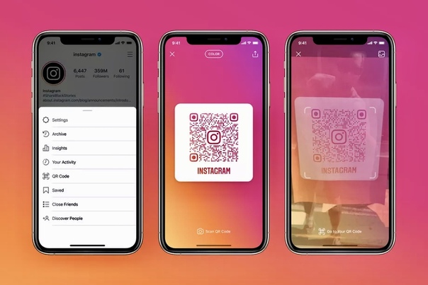 Как сгенерировать QR-код для быстрой подписки на профили пользователей.1. Откройте Instagram и перейдите на вкладку со своим профилем;2. Откройте шторку настроек в правом верхнем углу и нажмите QR-код.Показать полностью… Можно выбрать стиль и фон вашей карточки.Идея в том, что компании смогут распечатать QR-коды и попросить клиентов отсканировать их, чтобы легко открыть учетную запись соцсети. Оттуда люди увидят часы работы магазинов, покупать товары или просто подпишутся на аккаунт.Можно распечатать свой на свое рабочее место для коллег)))