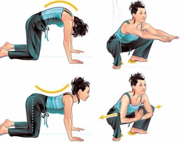 КАК ИЗБАВИТЬСЯ ОТ ЖЕСТКОСТИ МЫШЦ ПО УТРАМ?Корова-кошка.Встаньте на четвереньки. Колени должны быть по ширине плеч и согнуты под углом 90 градусов.Теперь осторожно поднимите голову за счет прогиба поясницы вниз; удерживайте положение в течение секунды.Показать полностью…Медленно опустите голову между плеч, поднимая вашу верхнюю часть спины к потолку, позволяя ей округлиться. Повторите 10 раз.Приседания.Встаньте прямо, ноги на ширине бедер, носки оттянуты слегка наружу, руки по бокам.Согните ноги в коленях и опуститесь так, если бы вы сидели в кресле. Держите свой вес на пятках и опускайтесь, пока ваши бедра не окажутся параллельно земле или ниже.Напрягите ягодицы и выпрямите ноги, чтобы вернуться вверх. После 10-го повторения, останьтесь в нижнем положении, упритесь локтями во внутреннюю сторону колен.Аккуратно нажмите локтями на внутреннюю сторону ноги, чтобы раскрыть бедра. Оставайтесь в этой позе в течение 30 секунд. Самый крупный и содержательный ресурс о йоге. Жми...