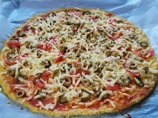 ПП-пицца на курином фарше без теста.На одну небольшую пиццу 300 грамм куриного фарша. Я брала 600 т.к. ужин был на троих. В фарш добавляем 1 яйцо(так как фарша было вдвое больше, то я добавила 2 яйца), чеснок, перец, соль по вкусу. Хорошо вымешиваем.Выстилаем пергаментом противень, если сомневаетесь в качестве бумаги, можно смазать капелькой раст.масла. Выложить фарш на пергамент, разровнять ложкой круг/квадрат (кому как хочется) толщиной 1 - 1,5 см. Ставим в духовку разогретую до 180 градусов лепешку из фарша на 10-12.минут.По истечении времени достаём полуготовый фарш, смазываем томатной пастой, сыпем орегано. А далее начинку по своему вкусу, предпочтениям и наличию ингредиентов. Я добавляла болгарский перец, помидор, оливки, и чуть маринованных огурцов, все сверху поспала твёрдым сыром. Поставить в духовку на ту же температуру ещё на 10 минут.